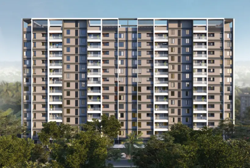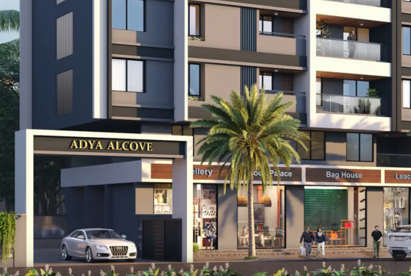 Adya Alcove features a modern façade with clean vertical lines, wide balconies, and a contemporary elevation that blends seamlessly into Wakad’s urban fabric. The development comprises two residential wings rising above a commercial podium, with retail outlets at street level adding everyday convenience for residents.