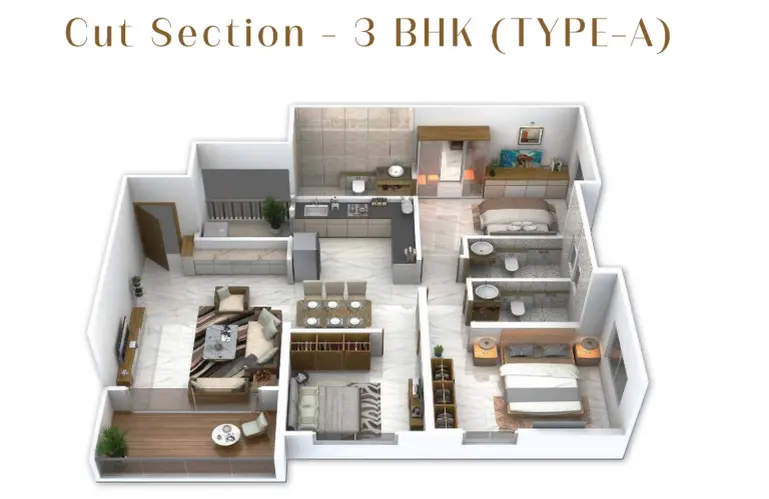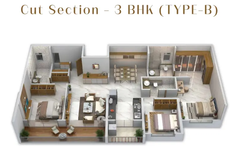 The project exclusively offers spacious 3 BHK residences, available in multiple layout configurations to suit varied lifestyle needs.
