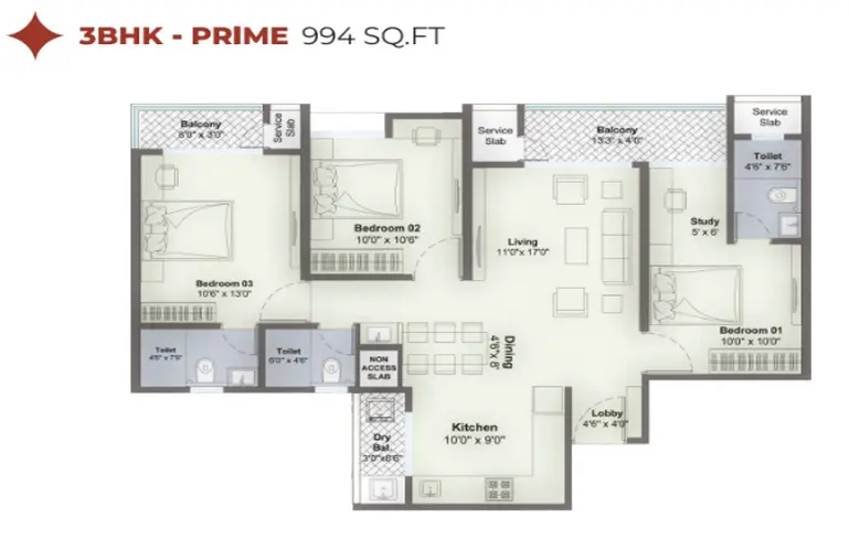Select 3 BHK plans also incorporate a study niche, catering to hybrid work-from-home needs—an increasingly practical feature for professionals.