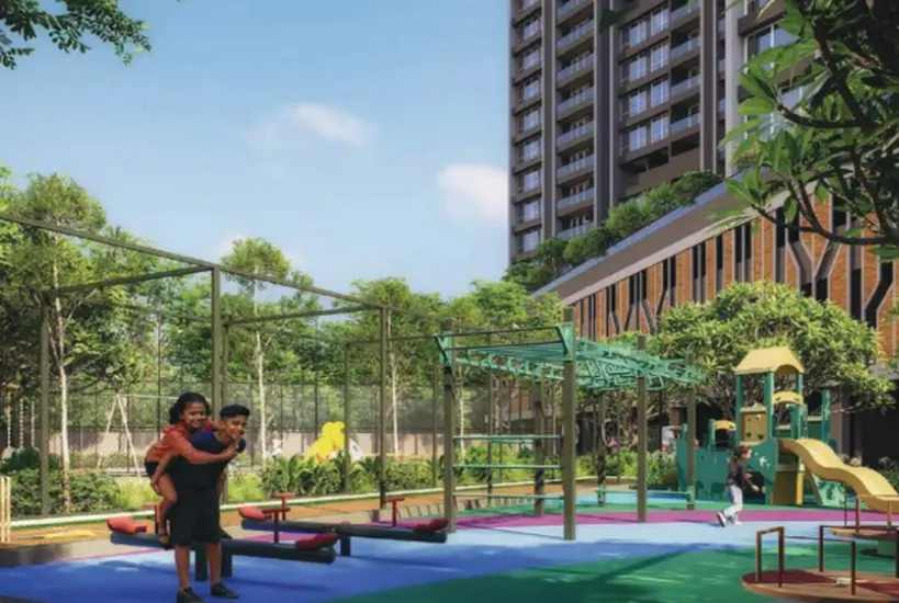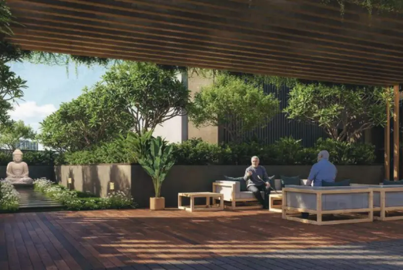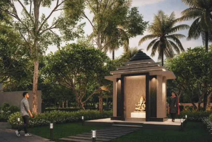 The development integrates landscaped walking trails, meditation alcoves, sculptural gardens, water elements, and shaded seating zones that encourage stillness and social connection alike. This curated environment brings balance between nature, architecture, and everyday living — delivering a rare park-within-a-park experience in central Chinchwad, Pune.