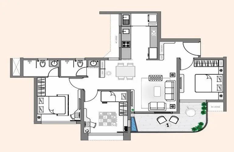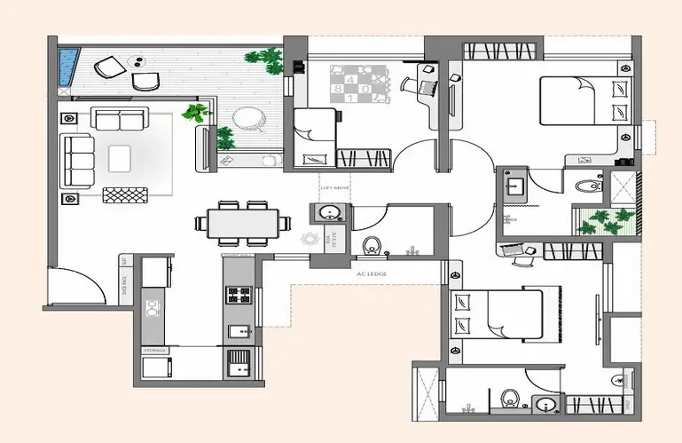 Type 3: 1058 sq.ft. – Larger layouts featuring multi-utility spaces such as a study, music room, or WFH corner – perfect for flexible, modern living.