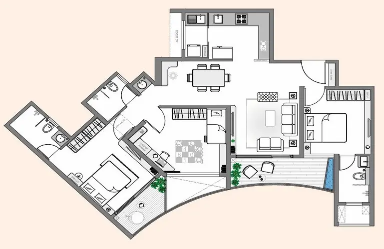 The residences at Palladio La Viento are crafted with a focus on natural light, ventilation, and seamless functionality. Each apartment is designed to be a space of elegance and efficiency, where every square foot serves a purpose.