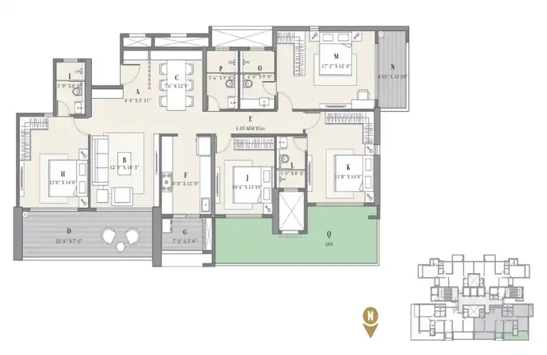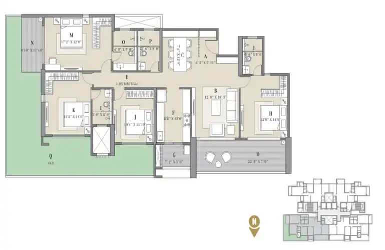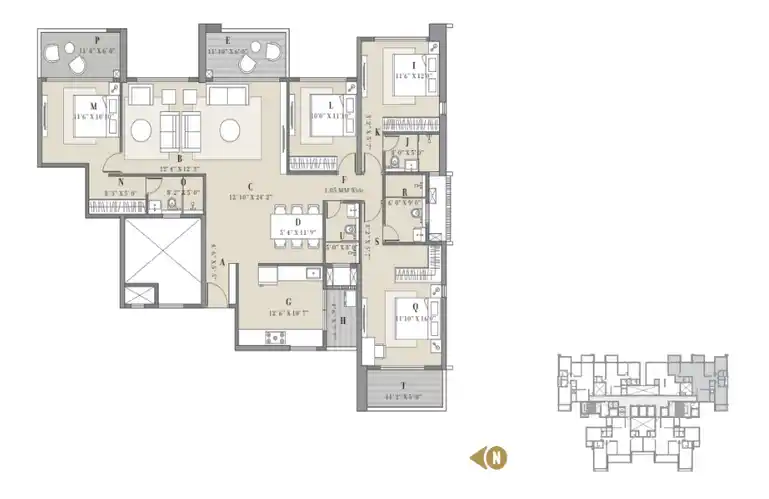The 4 BHK residences range from around 1450 to more than 2100 square feet, with prices beginning at ₹2.34 crore. These homes feature expansive living areas extending to sit-outs, large bedrooms with attached balconies, well-designed master suites, and the luxury of additional private terraces in select formats.