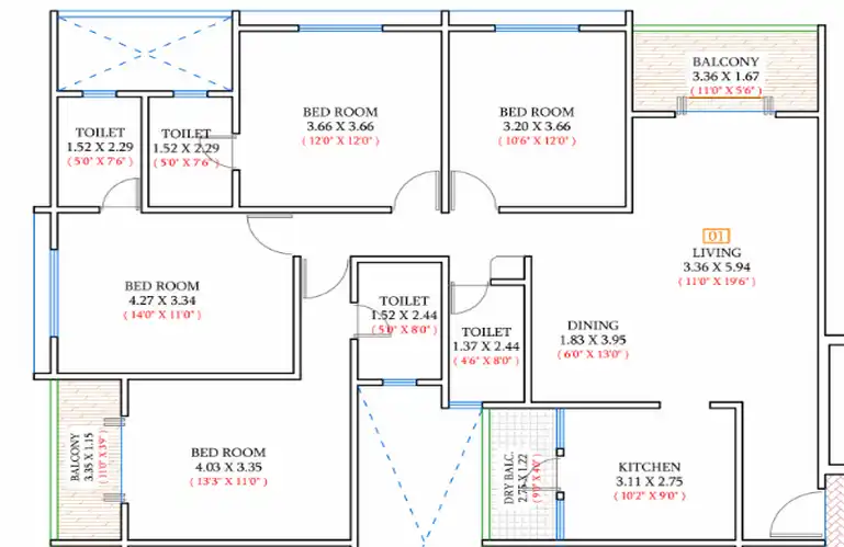 3 BHK & 4 BHK Residences – Space Built for Comfort & Class