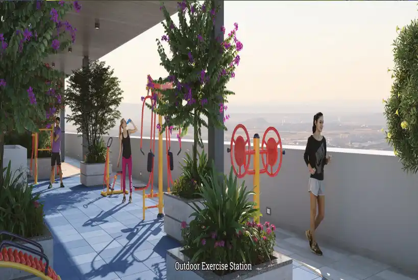 These 3 BHK residences strike a balance between generous space, elegant design and functional luxury. The carpet area begins around 1,110 sq.ft for 3 BHK units. Interiors feature vitrified tile flooring through living and bedrooms, designer CP fittings from brands such as Jaquar or Kohler in bathrooms, granite counters in kitchens and tasteful wood finish doors for main entries .Each home opens to breezy balconies and offers views of lush greenery, accentuating the connection with nature.