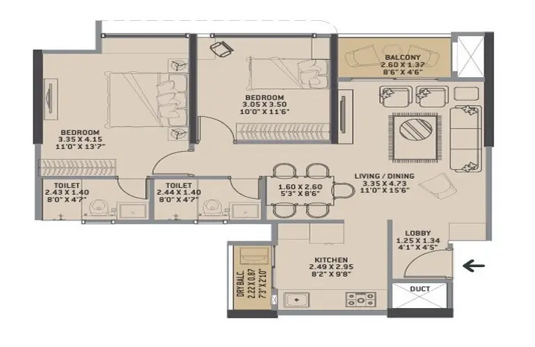 Elegant 2, 3 & 4 BHK premium residences with Simplex & Duplex options