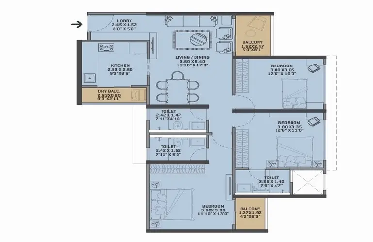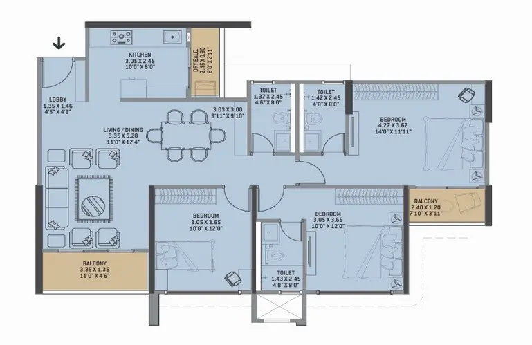 3 BHK Residences – from ~975 sq. ft. onwards