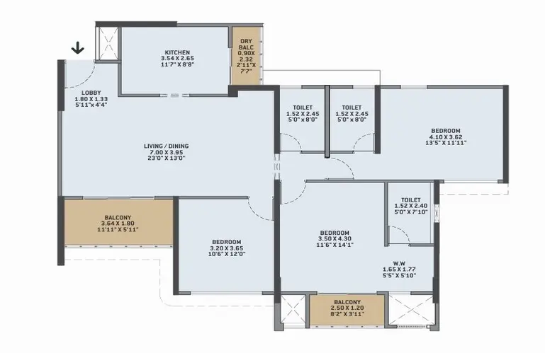 VTP Cielo offers some of the biggest homes in Bavdhan with multiple carpet area options: