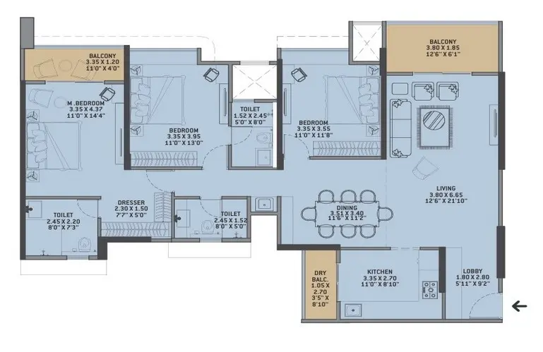 Spacious layouts with MLA (Maximum Livable Area) design advantage