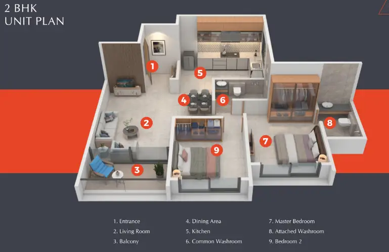 2 BHK Apartments: Ideal for professionals and nuclear families, offering efficient layouts, spacious living-dining areas, and well-proportioned bedrooms.