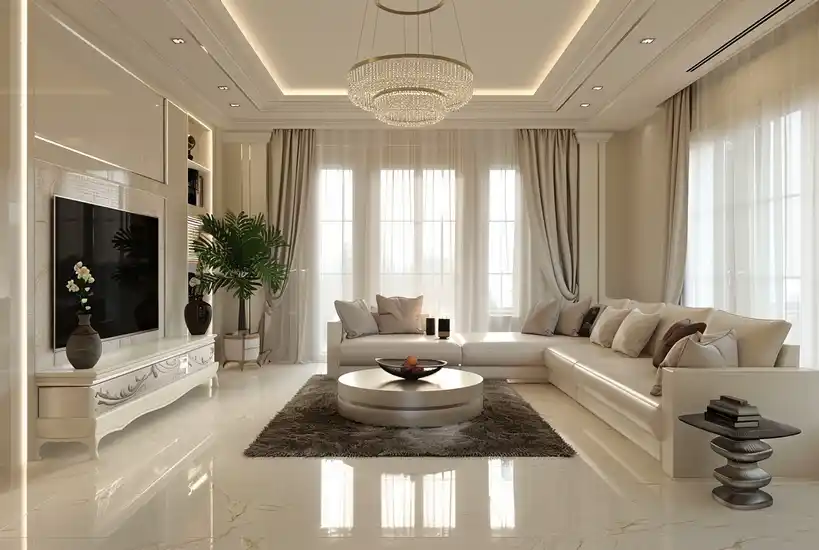 Premium vitrified tiles in living areas, high-quality wall paints, skirting, and branded CP fittings in wet areas to elevate interiors.