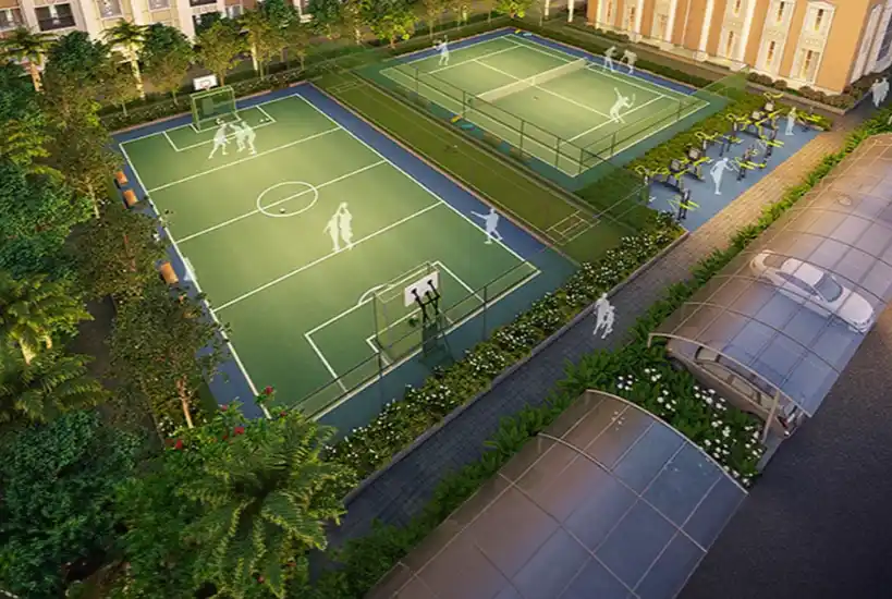 The community is designed to offer a feeling of abundant space—something increasingly rare in the city. The 2.4 lakh sq. ft. of recreational spaces include dedicated sports courts, party lawns, jogging tracks, children’s areas, community halls, and a half Olympic–sized swimming pool. These elements define a living environment where wellness, leisure, and social interaction become part of everyday life.