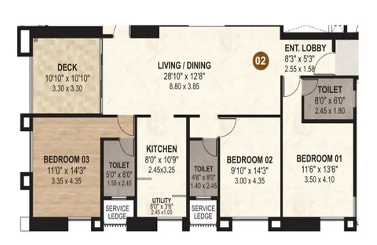 The 3 BHK apartments are ideal for modern urban families, featuring generous living and dining areas, well-sized bedrooms with attached bathrooms, thoughtfully designed kitchens, and private balconies that enhance everyday comfort.
