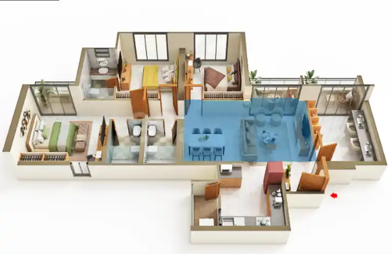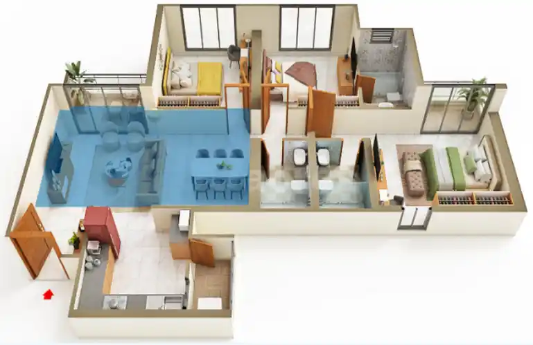 Each 3 BHK at Qrious is planned to maximise space, light, and privacy.