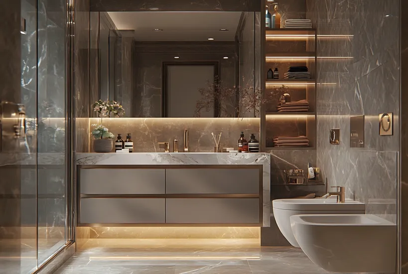 A grand entrance lobby welcomes residents with refined interiors and premium finishes, creating an impressive arrival experience. The design integrates high-quality materials, elegant textures, and contemporary aesthetics to establish a luxurious residential ambience from the moment residents enter the building.