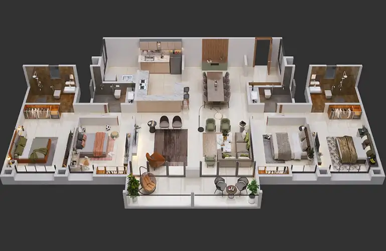 4 BHK residences cater to buyers who desire large-format homes with defined private zones, perfect for multi-generational living or luxury seekers.