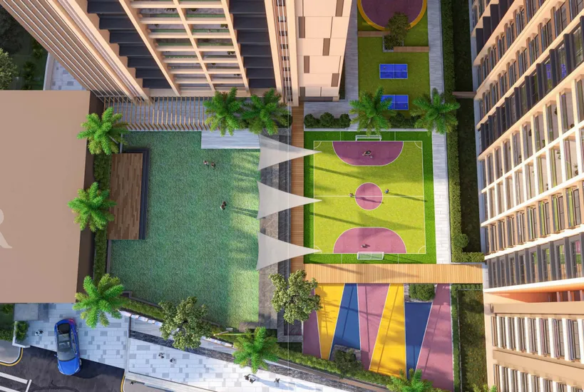 The podium-level greens offer an elevated social ecosystem where families can unwind, children can play safely, and neighbours can connect in beautifully designed outdoor environments.