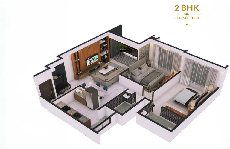 The 2 BHK residences are ideal for young professionals and modern families seeking efficient yet elegant homes with generous living areas, stylish kitchens, and well-appointed bedrooms.