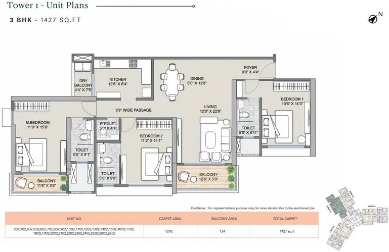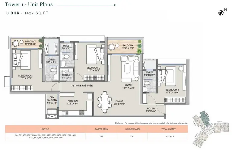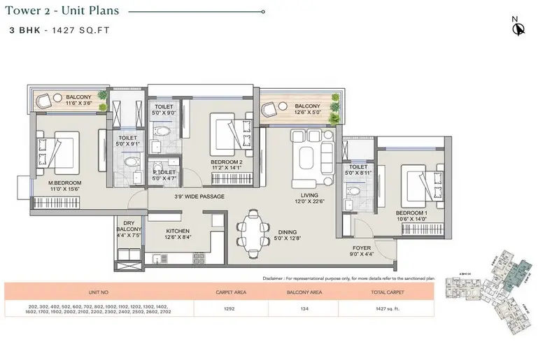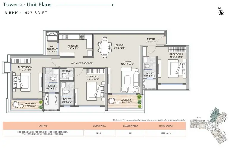 - 3 BED – 1427 sqft – ₹3.30 Cr onwards (2nd floor)