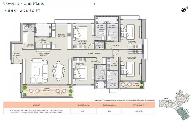 - 4 BED – 2178 sqft – ₹5.16 Cr onwards (2nd floor)