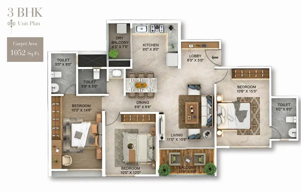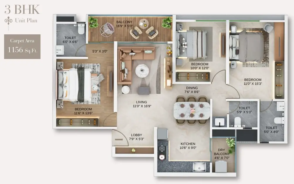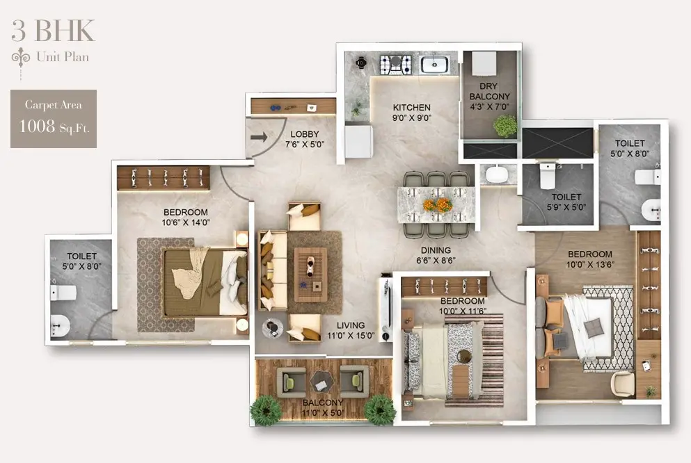 - 3 BHK Residences: 1008 – 1388 sq.ft. | Starting at ₹2.05 Cr. (All Inclusive)