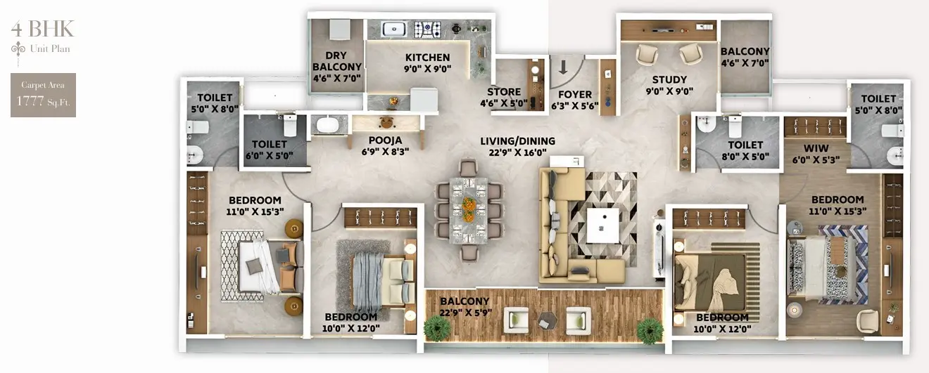 - 4 BHK Residences: 1777 sq.ft. | Starting at ₹3.65 Cr. (All Inclusive)