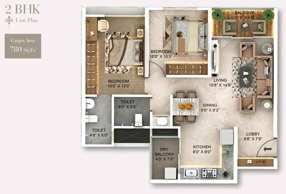 - 2 BHK Residences: 780 – 898 sq.ft. | Starting at ₹1.55 Cr. (All Inclusive)