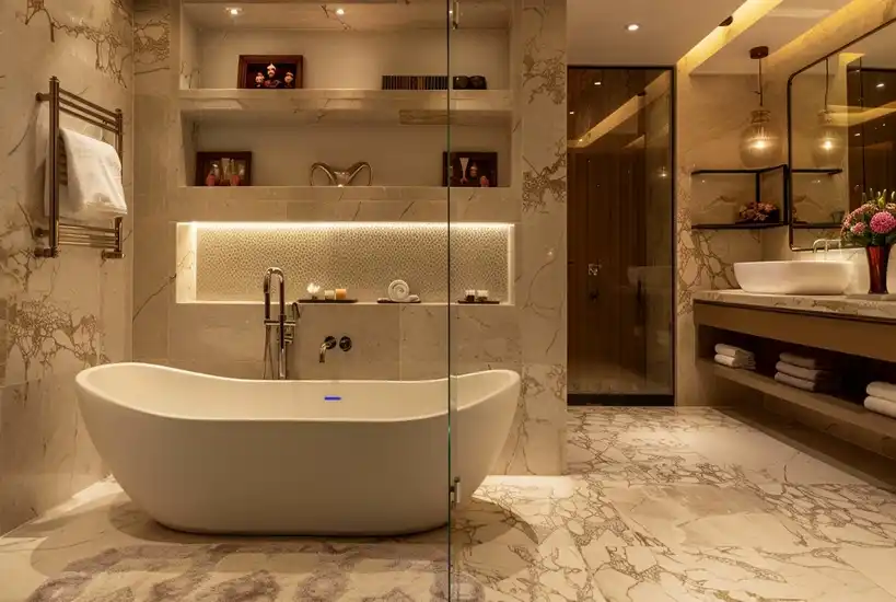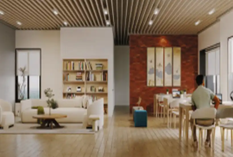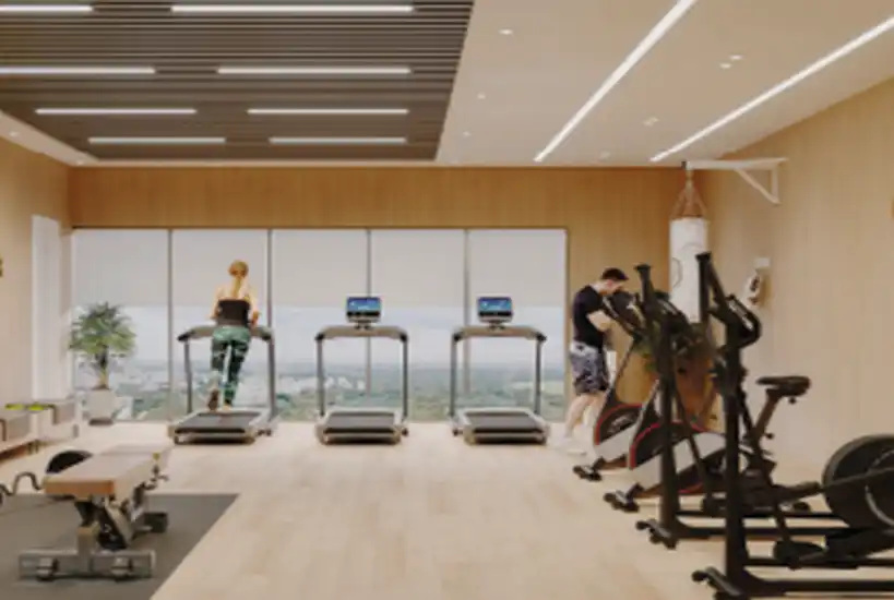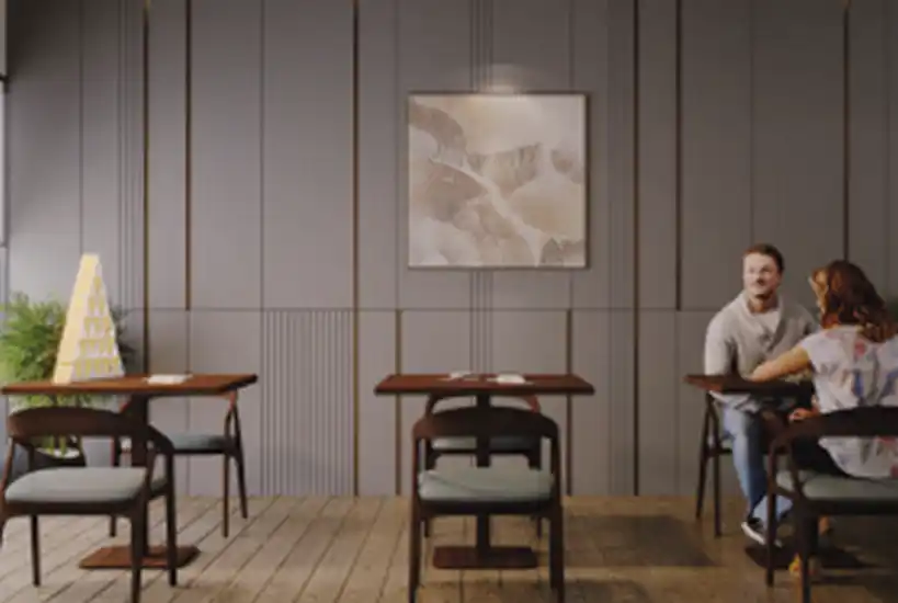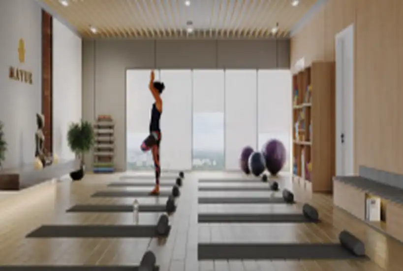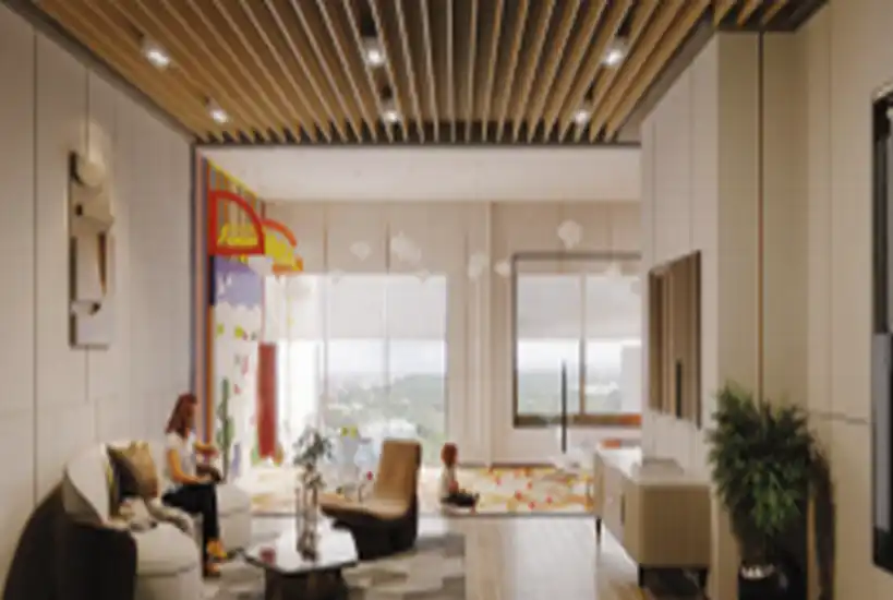 The recreation floor is dedicated to wellness, productivity, and entertainment. Residents can enjoy a fully equipped gymnasium, yoga and kickboxing studio, steam room, golf simulator, home theatre, and a vibrant indoor games arena. A professionally designed co-working lounge, guest rooms, and a creche ensure daily life remains seamless. A unique sky walk connecting the towers adds an elevated experiential element rarely found in residential developments.