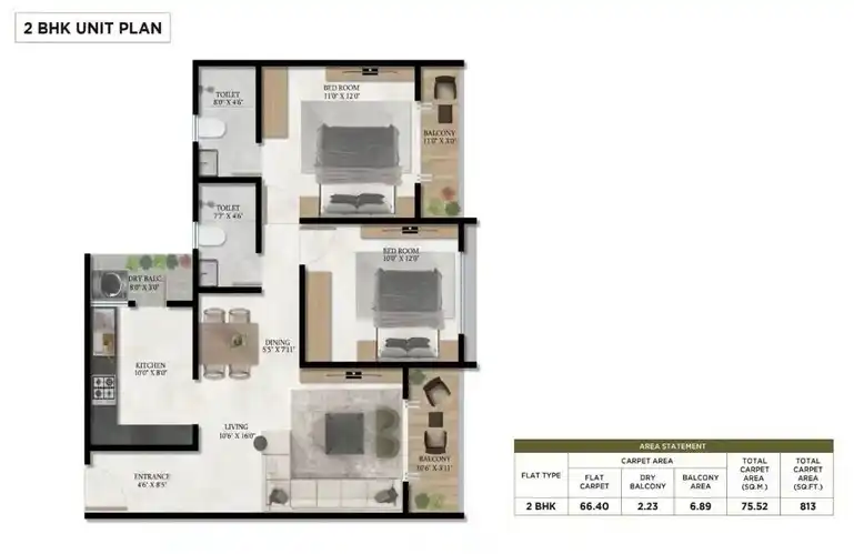 • 2 BHK – Smart layouts for modern couples and compact luxury seekers