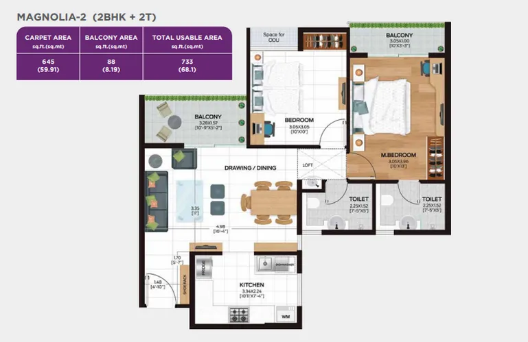 2 BHK + WFH (Magnolia 3) 970 94,50,000 10,69,000 1,05,19,000
