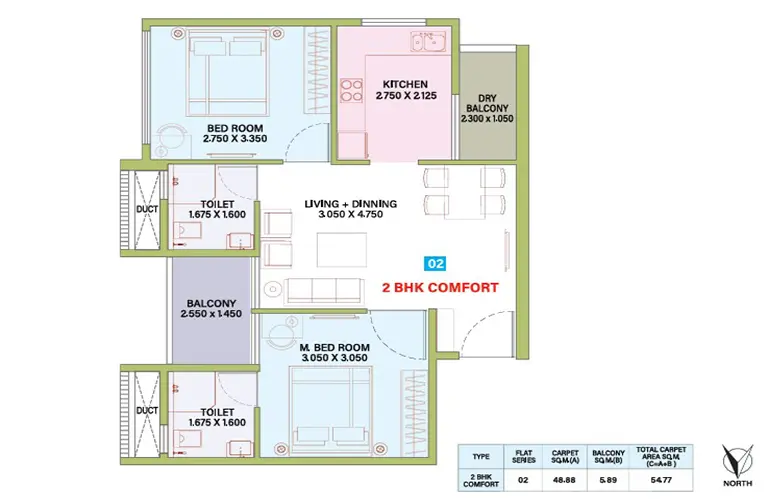 The thoughtfully crafted 2 BHK apartments are ideal for modern families, young professionals, and discerning homeowners who value comfort and class.