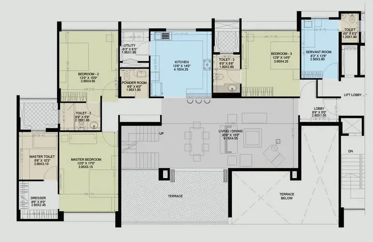 Large-Format Homes: 3.5 BHK apartments & penthouses with expansive terraces.