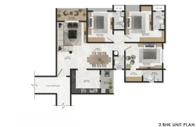 REZO offers a limited collection of spacious 3 BHK and 4.5 BHK Residences, each meticulously designed to deliver openness, functionality, and elegance. These homes feature expansive living and dining areas, well-proportioned bedrooms, and wide balconies that invite abundant natural light and ventilation.