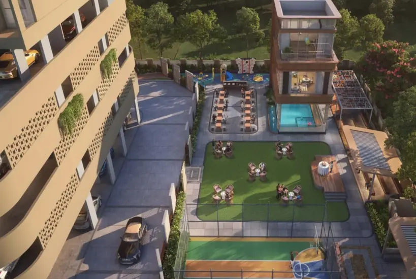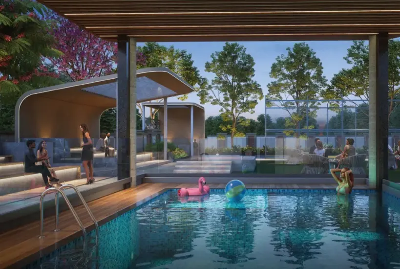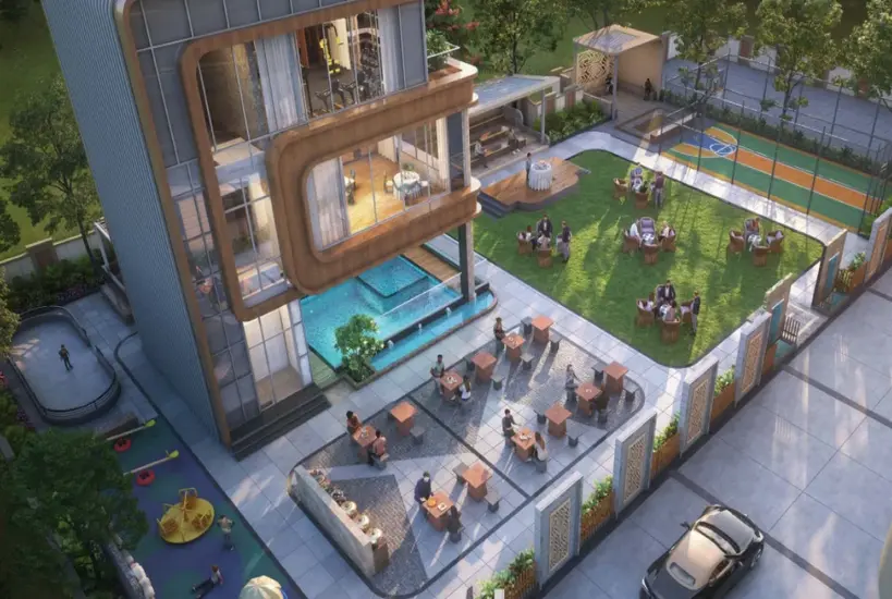 Residents have access to thoughtfully planned lifestyle zones including landscaped open areas, a swimming pool with deck, a multipurpose hall, an indoor gym, yoga and meditation spaces, children’s play areas, jogging tracks, and seating zones designed for informal social interaction. Dedicated co-working spaces acknowledge the evolving work patterns of urban professionals, while recreational courts and activity zones support active living for all age groups.