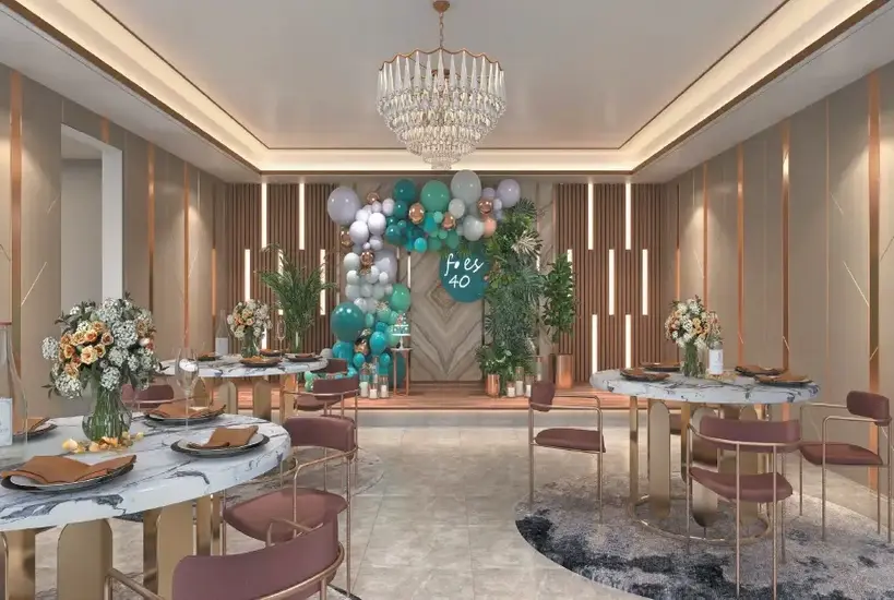 Mini-theatre, cafeteria, and multipurpose party lawns
