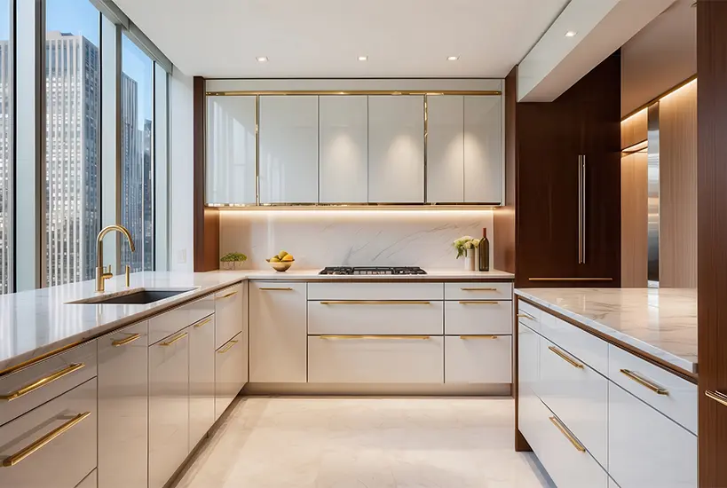 Modular kitchen with hob, chimney, and built-in OTG & microwave