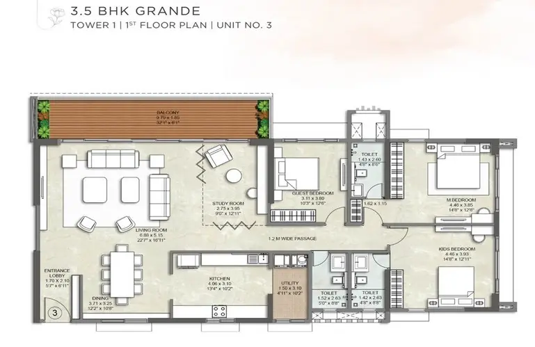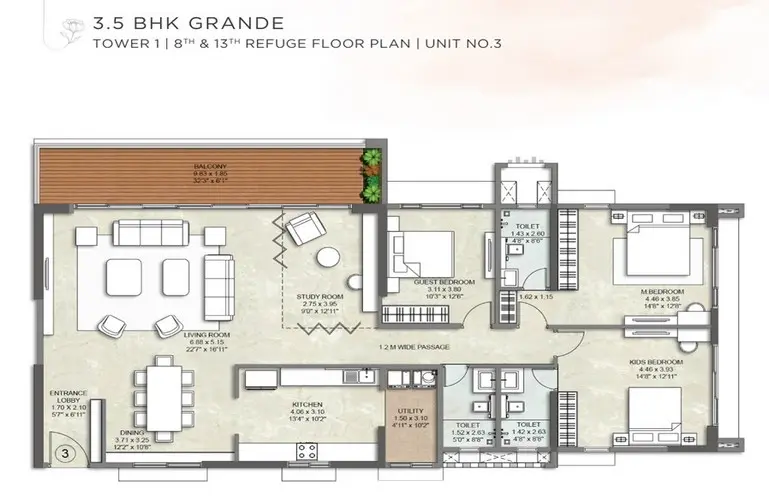 3.5 BHK Grande Tower One Eight Floor Unit 3