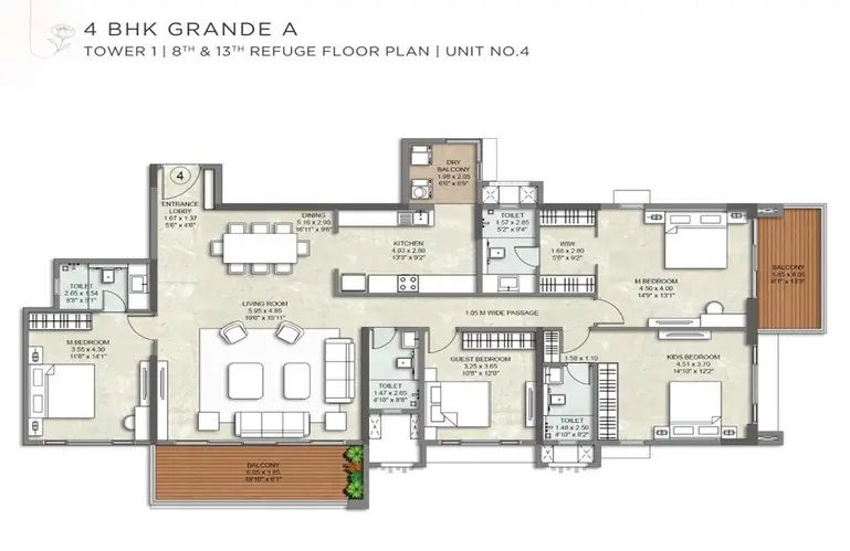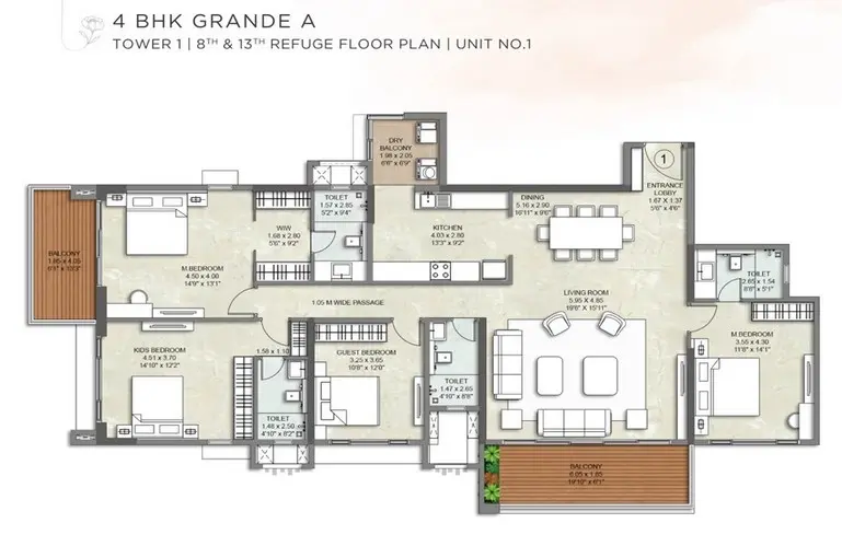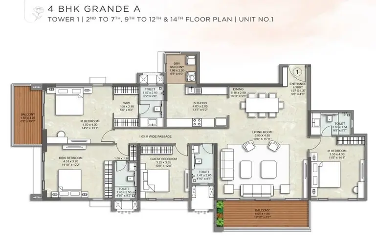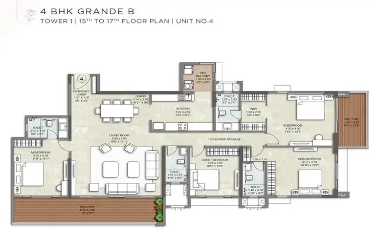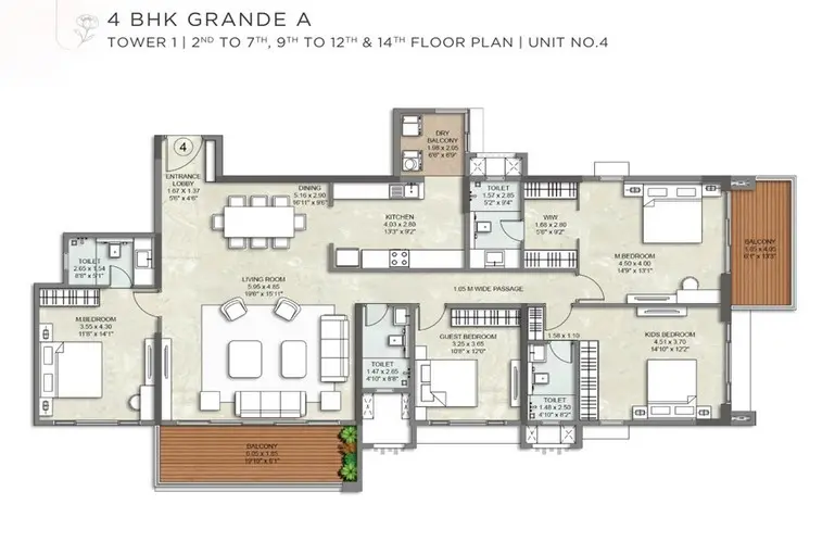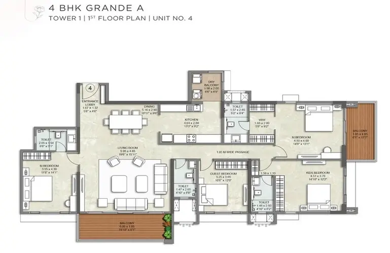 4 BHK Grande A Tower One Unit 4 Eighth Floor