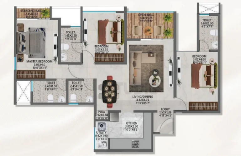 Soaring towers of 31 floors present a bold urban skyline while maintaining an intimate sense of privacy through intelligently planned residential clusters. With over 60% open spaces and designer landscapes, the development achieves a rare balance between vertical luxury and grounded serenity.