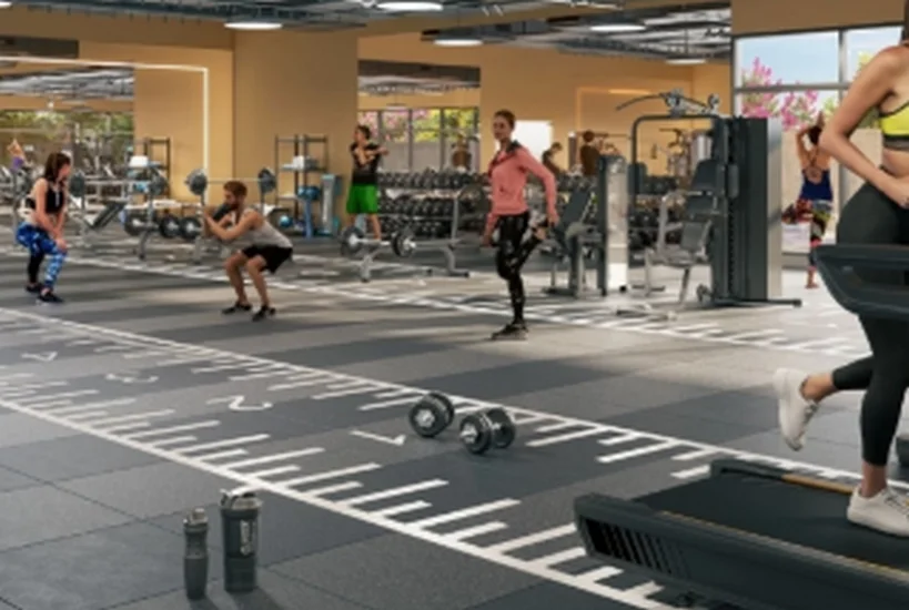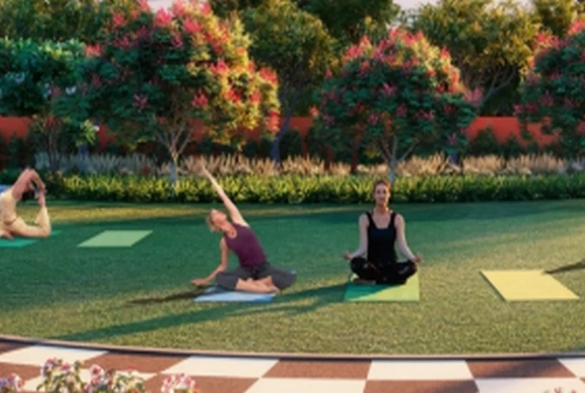 A grand 20,000 sq. ft. clubhouse forms the social heart of the community, complemented by two swimming pools including a sun-deck infinity pool, dual indoor gyms exceeding 3,000 sq. ft., café decks, squash courts, yoga lawns, jogging tracks, meditation gardens, tennis courts, skating rinks, cross-fit arenas, multipurpose courts, and expansive children’s play zones.