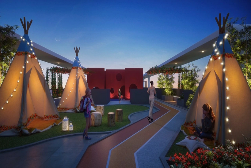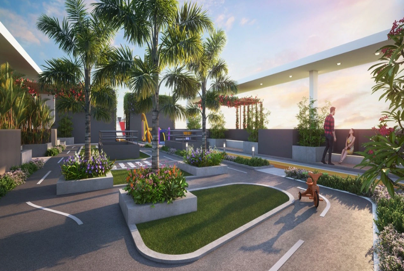 Outdoor amenities span all age groups, featuring a toddlers’ zone, children’s play areas, a teenagers’ zone, senior citizen courts, maze garden, musical garden, traffic island, jungle gym, sand pit, climbing mounds, star-gazing deck, and natural play zones. Every feature is designed to encourage creativity, activity, and community bonding.