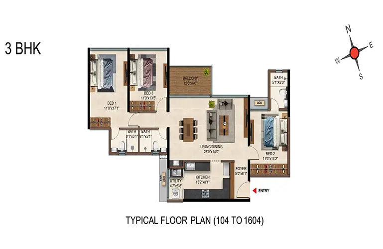 Casagrand Caladium has been crafted with attention to detail, ensuring a seamless blend of aesthetics and utility. The homes come with digital door locks, premium CP and sanitary fittings, and high-quality finishes that elevate everyday living. The contemporary design ensures ample natural light, cross-ventilation, and practical layouts that cater to urban lifestyles.