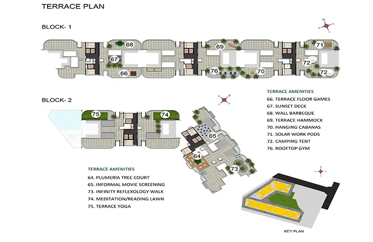 Relaxation Spaces: Hammock zone, sit-outs, shaded pavilions
